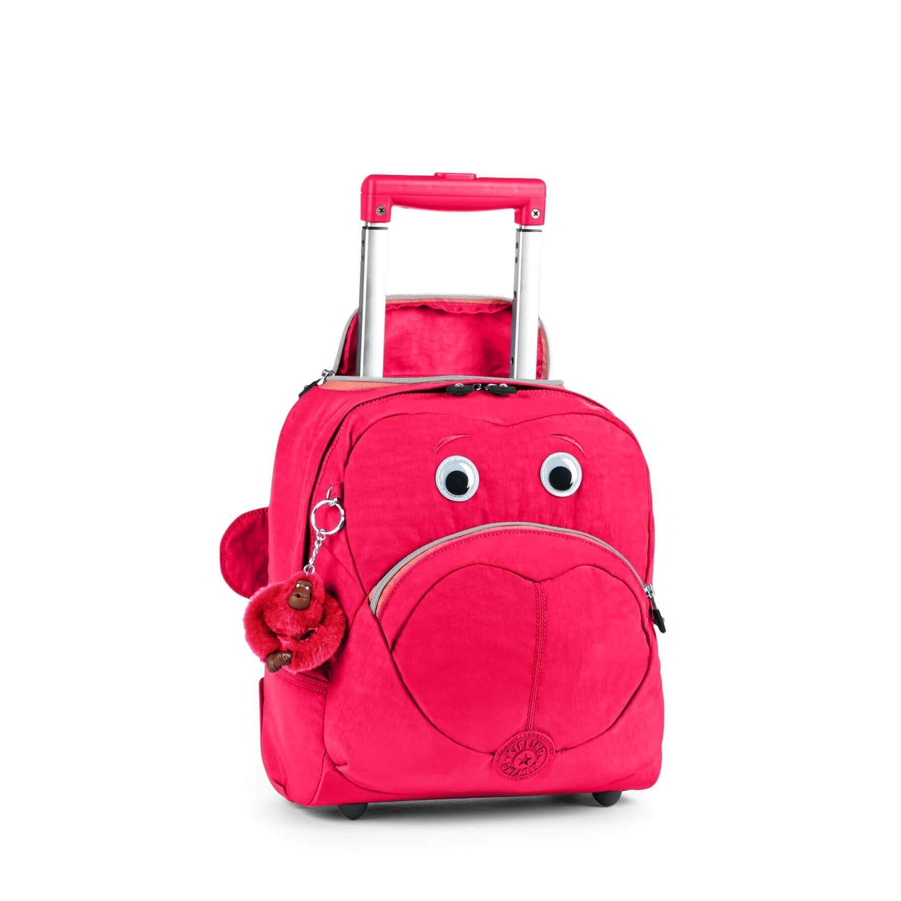 Kipling den Wheely Tekerlekli Okul Çantası.Kullanışlı olduğu kadar şirin Wheely 2 geniş hacimli bölmeli 2 tekerlekli bir çantadır. Bir çift göz ve kulak da öğrencinizin neşesini yerine getirecek.